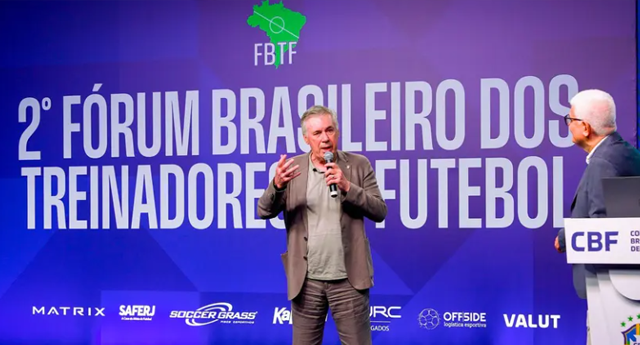 Nesta terça-feira (4), o comandante da Seleção participou do Fórum Brasileiro de Treinadores de Futebol, realizado na sede da CBF, mas organizado pela Federação Brasileira de Treinadores de Futebol (FBTF). Segundo apuração do Lance!, o próprio Ancelotti ajudou a trazer dois dos principais convidados do evento: o português Henrique Calixto, presidente da Associação Nacional de Treinadores de Portugal, e o espanhol David Gutiérrez Saiz, da Academia da Real Federação Espanhola de Futebol (RFEF).
