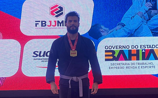 Atleta de jiu-jitsu Pedro Augusto Conquista o Campeonato Baiano na categoria Faixa roxa adulto super pesado