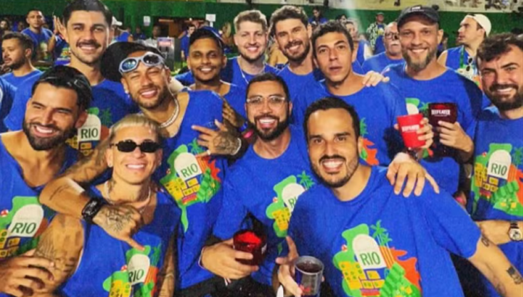 Neymar desfruta o Carnaval no Rio de Janeiro ao lado de três companheiros de equipe do Santos