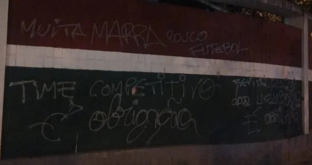 VIROU MODA: Muro das Laranjeiras é pichado após mais uma partida sem vitória do Fluminense