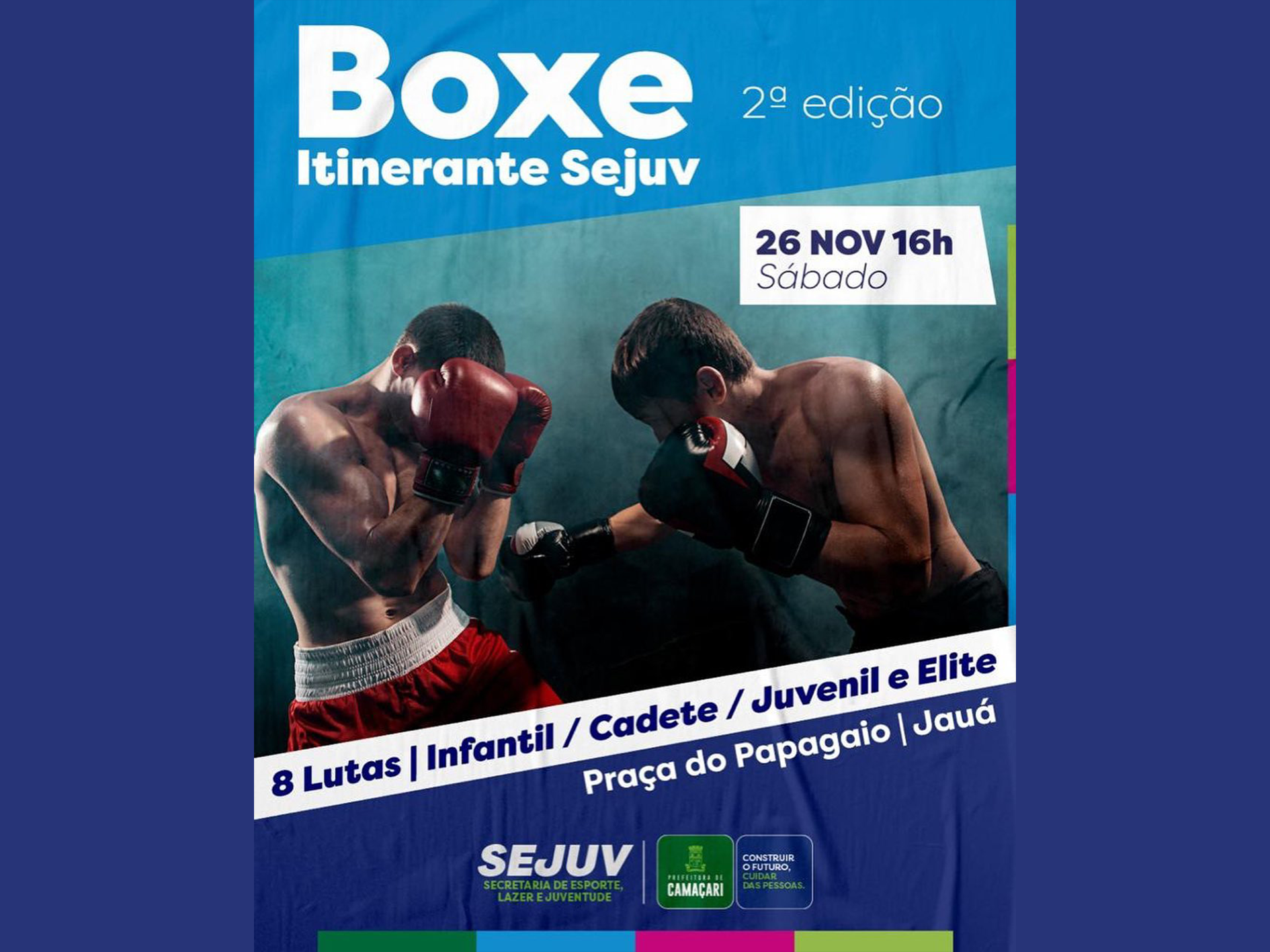 Neste sábado (26), a partir das 16h, a nova Praça do Papagaio, em Jauá recebe o projeto Boxe Itinerante Sejuv.