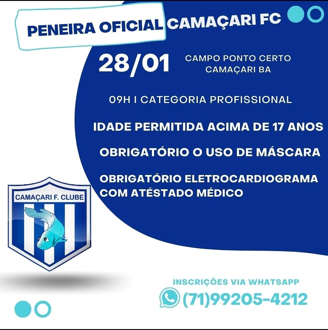 Camaçari Fc Realiza mais um Peneira para Time Profissional