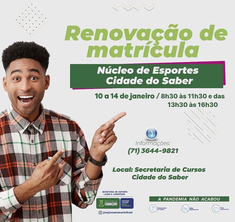 A Secretaria de Esporte, Lazer e Juventude (Sejuv) inicia nesta segunda-feira (10), a renovação de matrículas do Núcleo de Esportes da Cidade do Saber para o ano de 2022