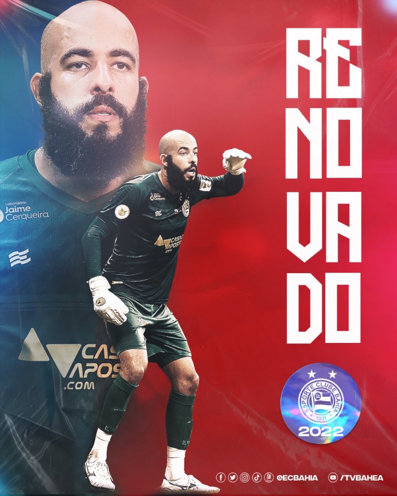 Bahia anuncia renovação em definitivo com goleiro Danilo Fernandes