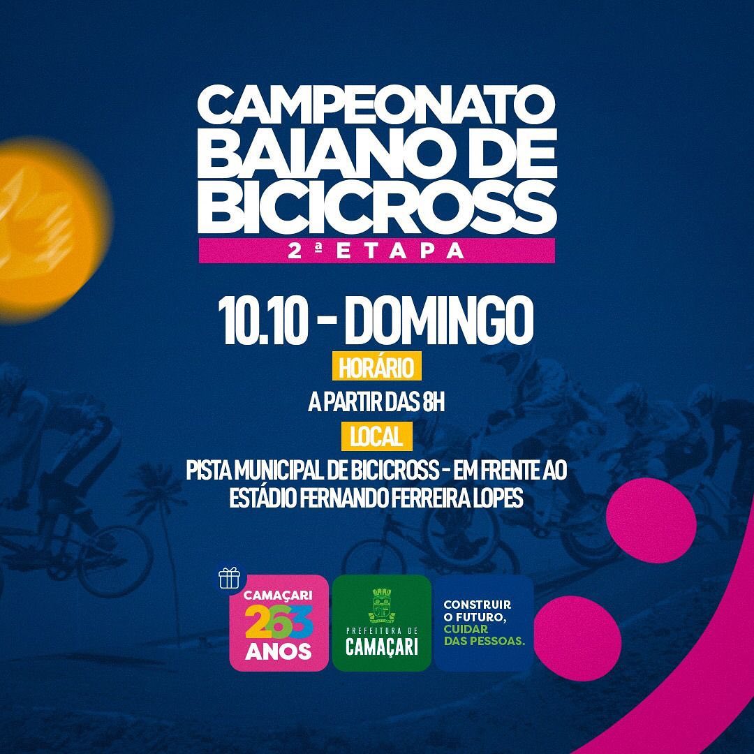 No dia 10 de outubro (domingo), acontece a 2ª Etapa do Campeonato Baiano de Bicicross