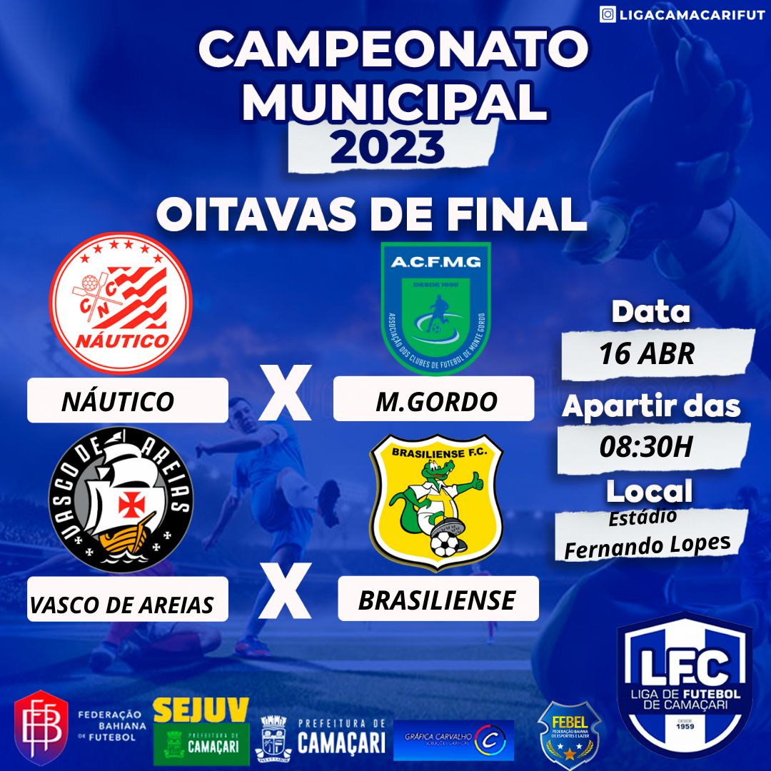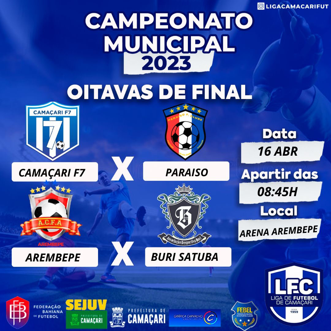 Foto: Reprodução Confrontos das 8° de final que vão movimentar o campeonato Municipal da Liga de futebol de Camaçari .Todos os jogos do Campeonato Municipal da liga de futebol de Camaçari, contam com apoio de FBF (federação Baiana de futebol) da Prefeitura municipal de Camaçari através da SEJUV e da FEBEL (federação Baiana de Esportes e lazer).
