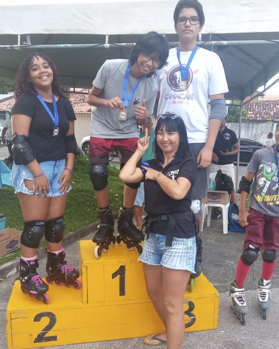 Sou japonesa que mora em Camaçari, e tenho projeto social de patinação”
