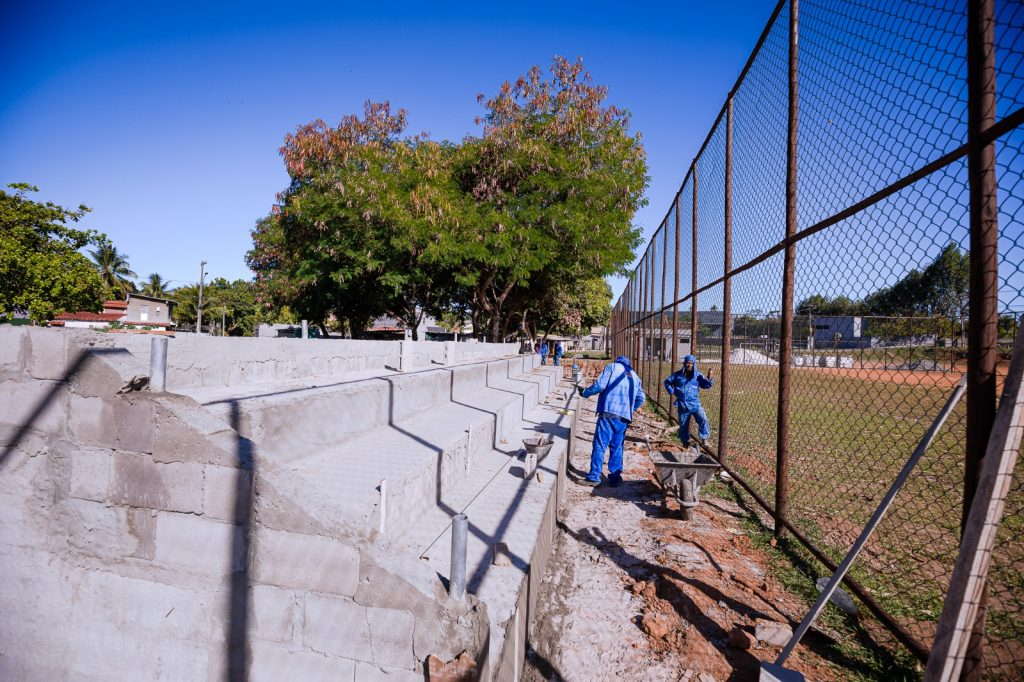 No campo de Barra do Jacuípe, situado nas imediações da BA-099, as obras acontecem em 6.567 m² e contemplam a colocação do novo alambrado em eucalipto do campo de futebol, bem como a execução da arquibancada.