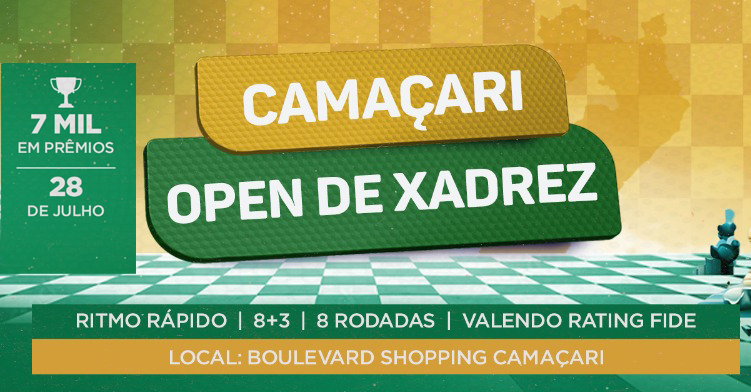 Foto: Reprodução A Federação Bahiana de Xadrez realizará mais um grande evento esportivo regional: o Camaçari Open de Xadrez. Competição valendo rating internacional da FIDE além de 7 mil em premiações.