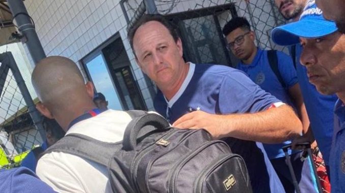 Torcedores do Bahia protestam no embarque da delegação para Goiânia