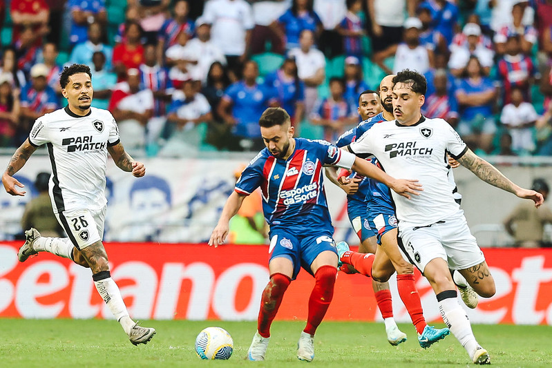 Em jogo eletrizante no 2º tempo, Bahia e Botafogo empatam na Fonte Nova